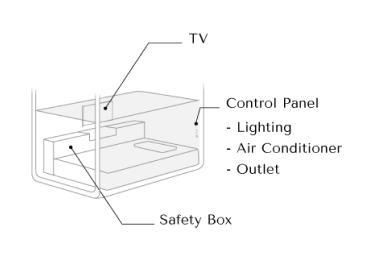 24インチ液晶テレビ ・100cm幅シングルサイズベッド ・換気機能 ・Wi-Fi ・コントロールパネル ・鍵付きセーフティボックス/シューズボックス