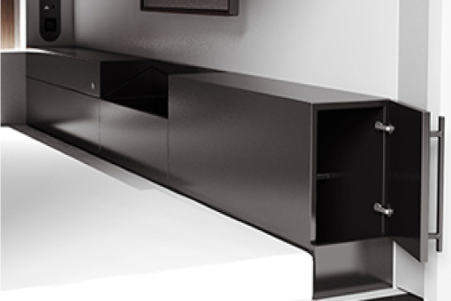 100cmシングルサイズベッドの横にはビジネスバッグも入るセキュリティボックスを完備 (横:74cm 奥行き:15cm 高:45cm)
